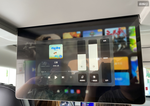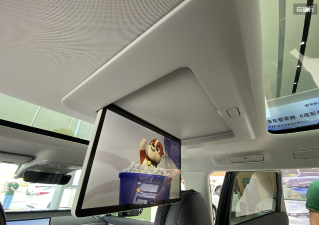 我们会在屏幕上看到一个桌板模式,这个功能的作用是当前排座椅调整得比较躺,小桌板打开空间不够,或者小桌板开启会不平时,他可以一键调整前排座椅的到适合打开小桌板的位置。同时还可以通过吸顶屏控制天窗遮阳板的开闭。但通过实际体验来看,这两个按钮放在这个吸顶屏上太高了我们会,都需要在座位上立起身来操作,肯定不受懒人喜欢,如果能放在座椅旁边的门板上操作会更好。