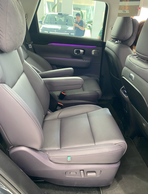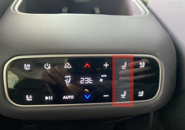 我们看到前排座椅是没有调节前后的VIP实体开关,实际上这个功能是被集成到了Console后端的小屏幕上,通过触控进行操作。在这上面还能同时操作的有二排座椅的通风和加热以及空调。