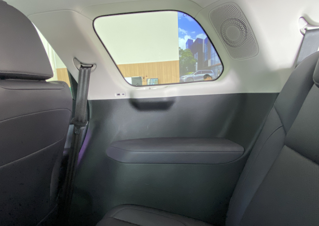 三排侧围上只有右边布置有手机充电口,同时,这个充电口和杯托布置的位置太高,不太方便使用,很少有车把这个位置放在窗台上面。
