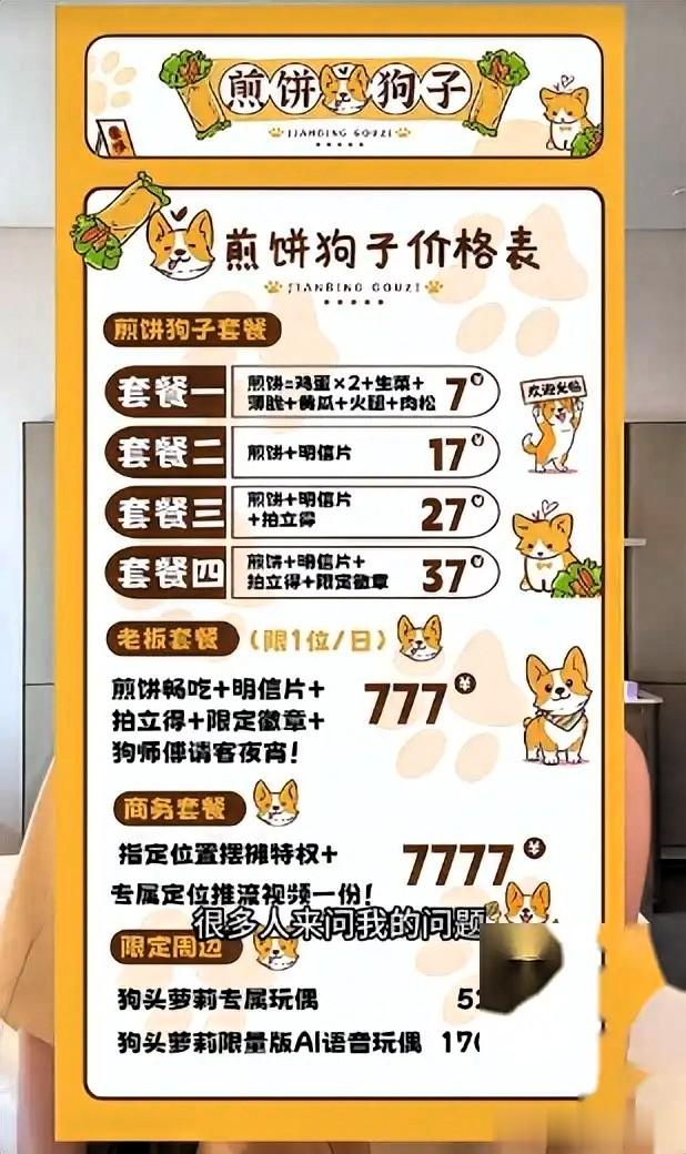买这777元套餐能得到什么?畅吃煎饼,几张明信片,拍立得合影。外加狗师傅请吃个夜宵。