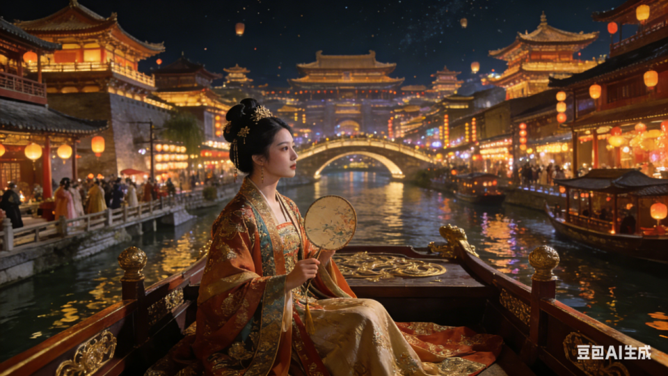 灯光设施在唐朝发展到了一个新的高度,唐玄宗正月十五举行临光宴,灯的品式多样,有白鹭转花、浮光洞、攒星阁等,有时还搭建雄伟的灯楼。唐朝开启了正月十五上元节观灯的习俗。后来还有利用自然环境以追求审美效果的灯光设施。明朝洪武五年正月十四,皇帝下令在秦淮河上点燃水灯一万支,十五日夜半就竣工了。万支灯火映照着秦淮河,水中闪烁的灯光像天上的繁星,秦淮河变成了银河。
