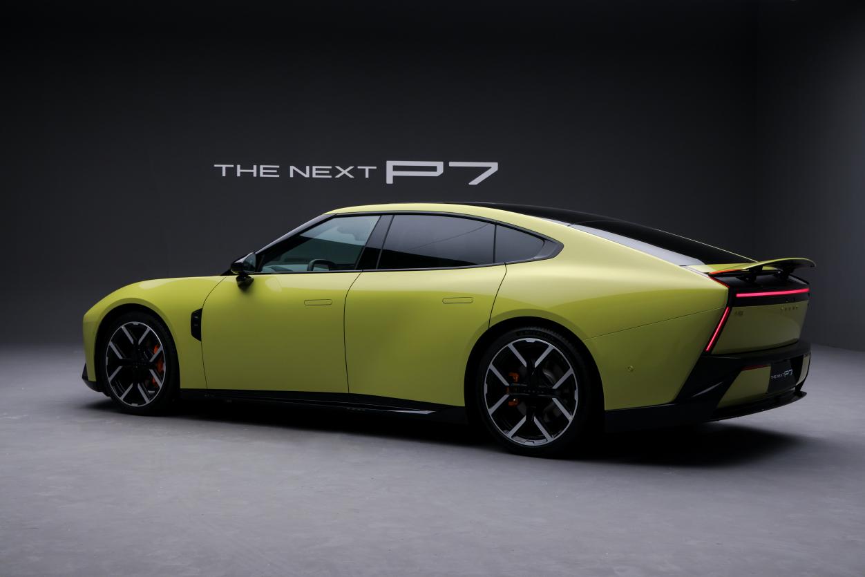 机甲风格的全新P7,为了好看甚至大灯也融入到折角里,六款车漆均为巴斯夫鹦鹉漆,更有镜面质感;非常直的A柱,A柱往后过渡的溜背设计一直到车尾,包括尾翼都是融为一体的。长L113,前檐外凸且低矮的车头搭配大前铲,更像60-80年代流行的楔型车身,整体的俯冲感很足,视觉冲击是前所未有的。