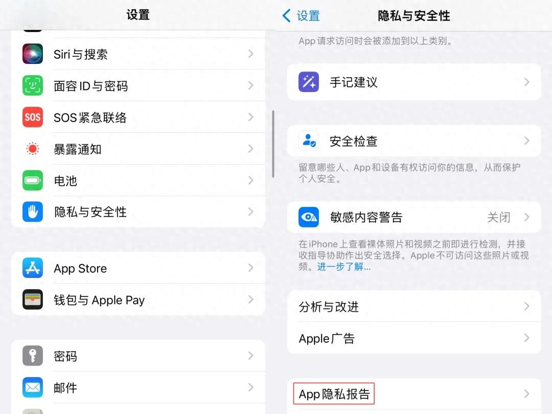 打开方式很简单,在【设置】里找到【隐私与安全性】,然后点进【APP隐私报告】,就可以查看手机里软件的活动情况了。