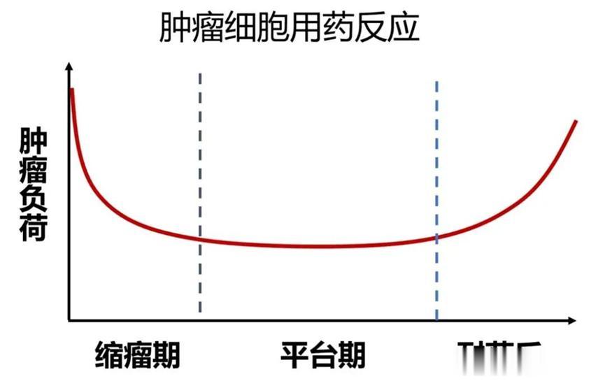 随后,肿瘤退缩的速度会减缓,甚至稳定不动,直到某一天,残存的肿瘤细胞突破某种桎梏,顶着药物的压力重新生长,就是耐药的表现。