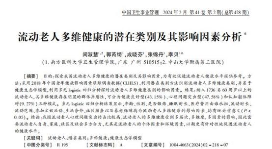 参考资料[1]闵淑慧.流动老人多维健康的潜在类别及其影响因素分析,中国卫生事业管理,2024-02-15