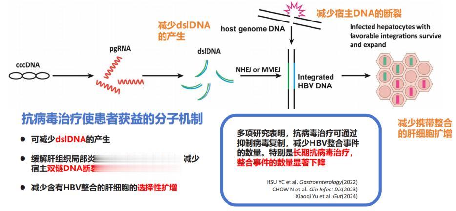 抗病毒治疗能够减少整合事件,早期抗病毒治疗具有重要意义。但目前的抗病毒药物尚难以完全清除整合DNA,cccDNA和HBV DNA整合在“临床治愈”后仍可存在,成为HBV再激活及HCC发生的重要风险因素。针对HBV整合的治疗策略正在不断探索,正在成为乙肝治愈和肝癌防治新的研究方向。