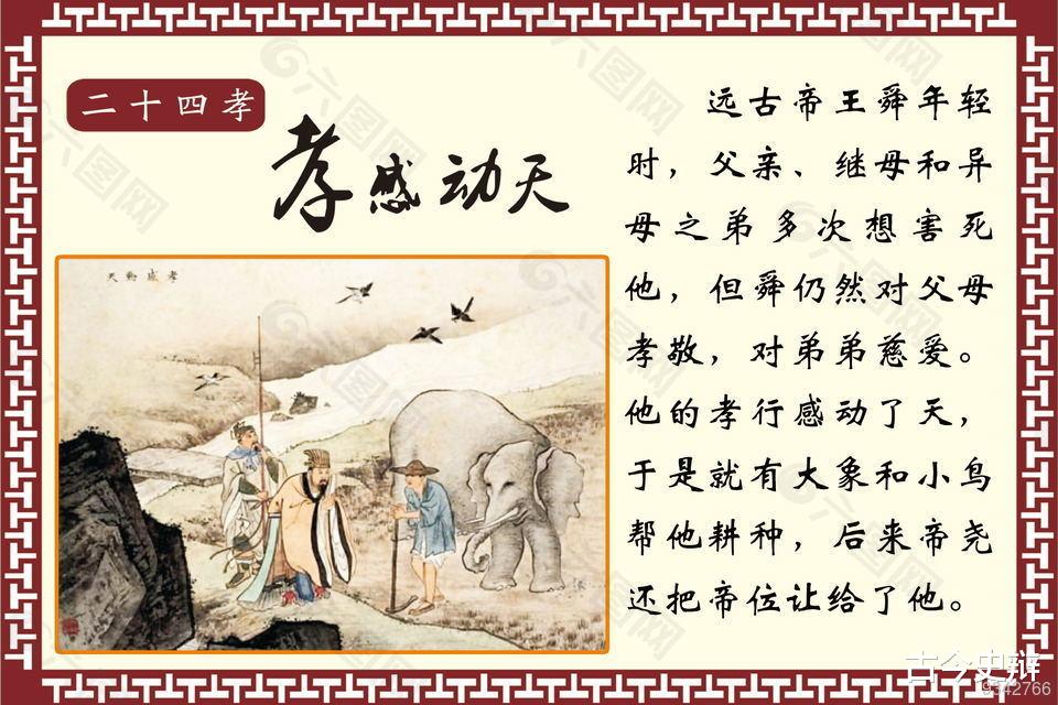 然而,不同于那些因为原生家庭不幸导致人生道路走偏的人,舜在长大以后能够恪守人伦纲常,践履圣王之道,被后世儒家尊奉为“人君之典范”。即便舜后来拥有了天下,仍然可以不计前嫌,善待自己的父亲、继母、弟弟等人,《二十四孝》更是将舜的“孝行”列在了首位。