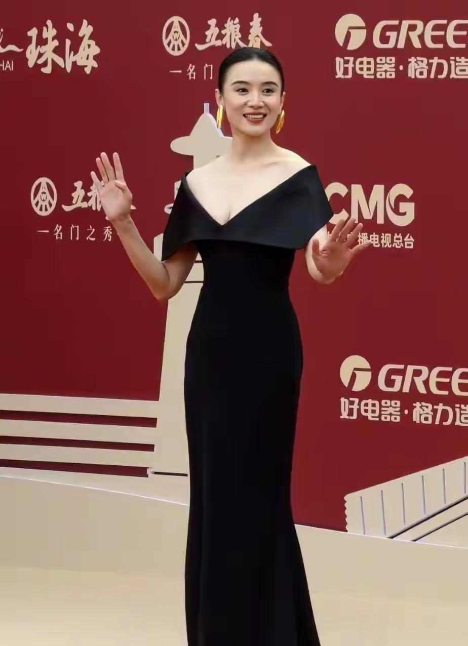 造型上宋佳也是非常利落干练,中分盘发,大气端庄,妆容完美有气场,金色耳环很是吸精,白皙细腻的皮肤和黑色礼裙形成对比,美得让人移不开眼