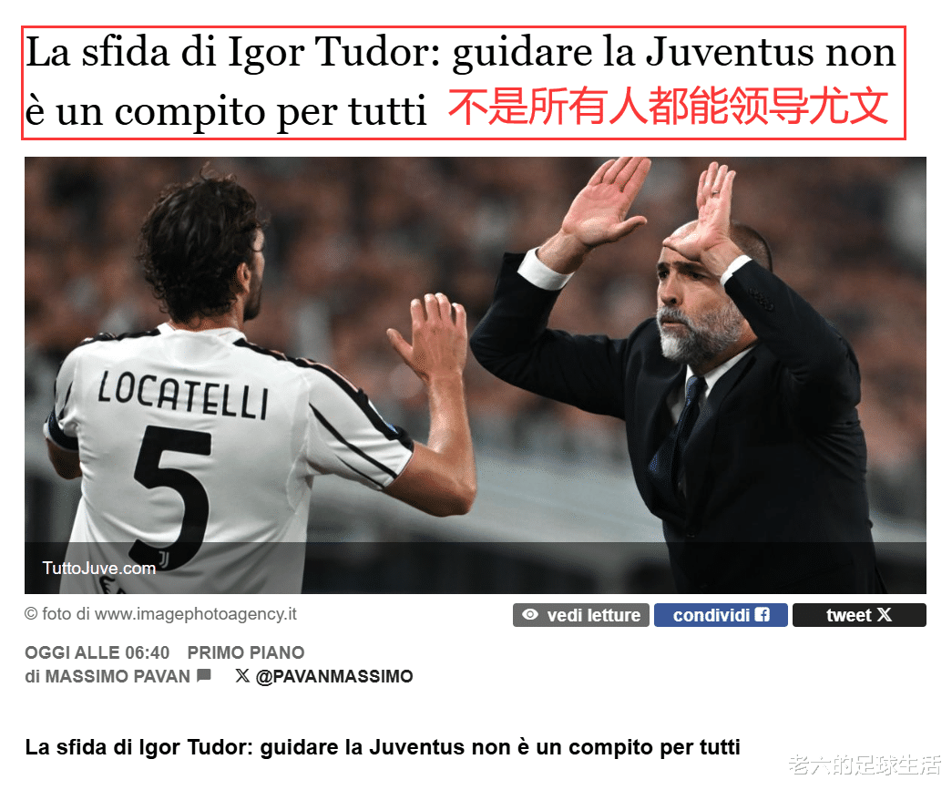 现在意大利各大媒体都在报道图多尔不适合执教尤文,专门报道尤文的媒体Tutto Juve直接了当的表态在尤文,赢得比赛是常态,输掉比赛就代表你水平不够,没有中间地带。