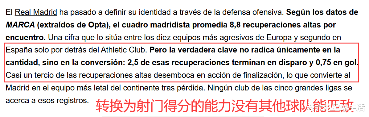 而且其中2.5次的高位抢回能转化为射门,0.75次转化为进球,这一点基本没有其他球队能与之匹敌。