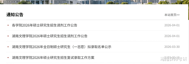 湖南文理学院发布了2026考研一志愿名单,以及26考研调剂信息。大家都可以多多了解呀!