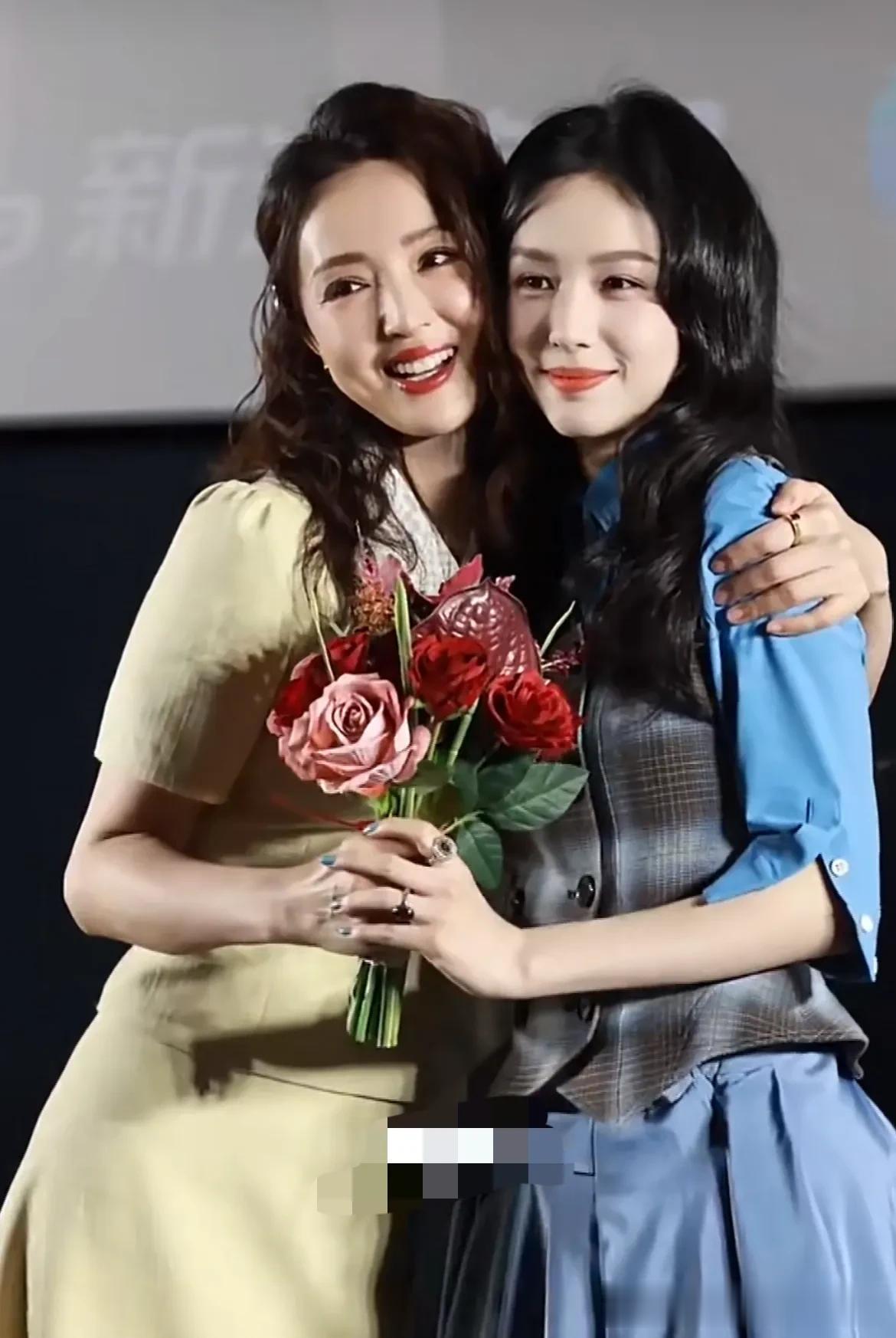 她们俩相差了19岁,但是小编惊喜地发现,当她俩同框的时候,董璇居然秒了周也。董璇稍显肉感的身材前凸后翘,周也被她抱着的样子,身材稍显干瘪了些。