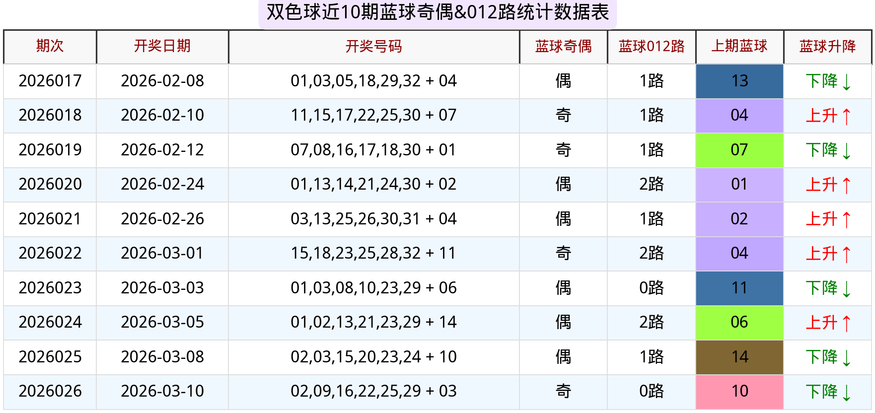 蓝球开出的是小号奇数03,属于0路号码,结束了偶数的连续出现。