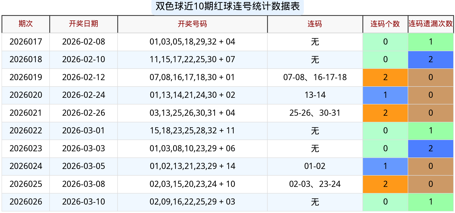 二、第 2026027 期核心指标深度分析1. 红球连号走势分析