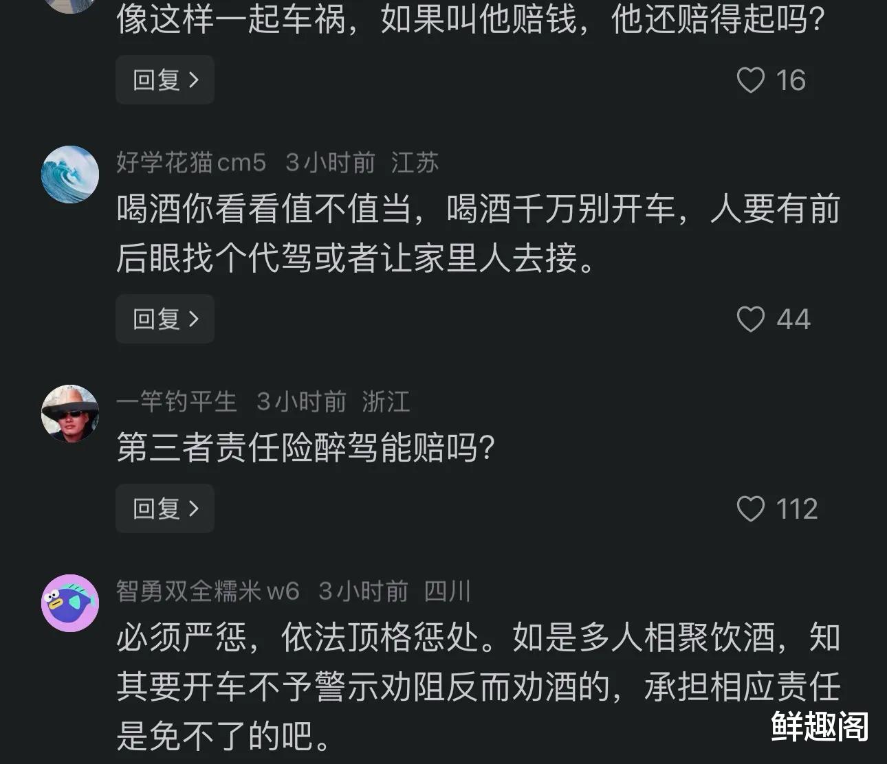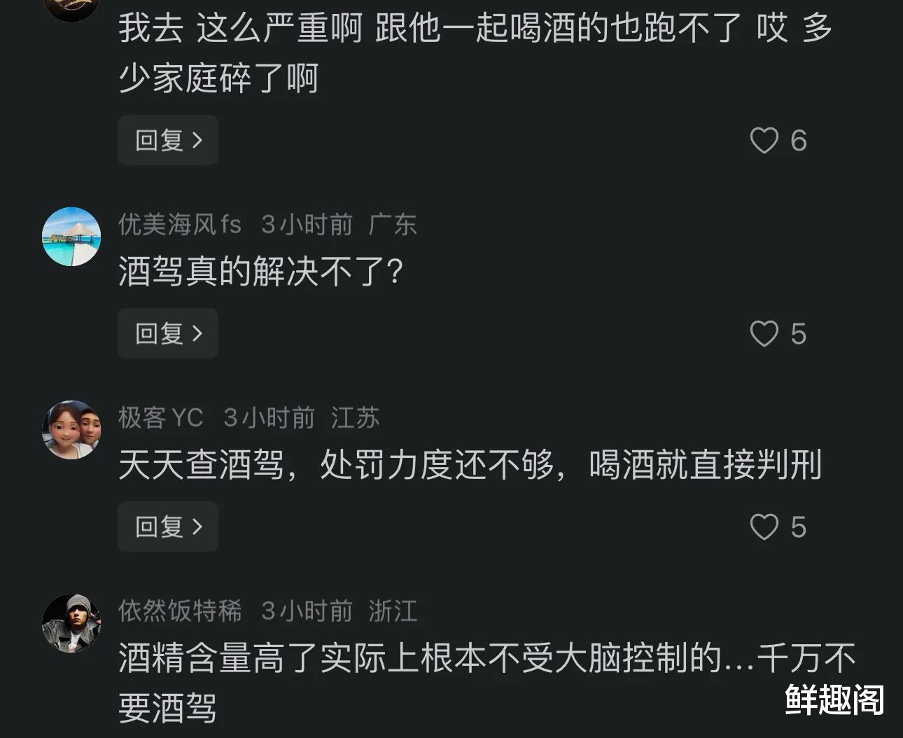 这起惨剧再次引发我们对酒驾危害的深刻反思。一次醉驾,瞬间夺走了8条生命,破坏了多个家庭的幸福。我们作为网友尚且感到悲伤,更何况自己的亲人和家属呢?在这里希望所有驾驶者能够牢记,必须遵守交通规则,绝不能在酒后驾车,也希望这样的悲剧再也不要发生了。