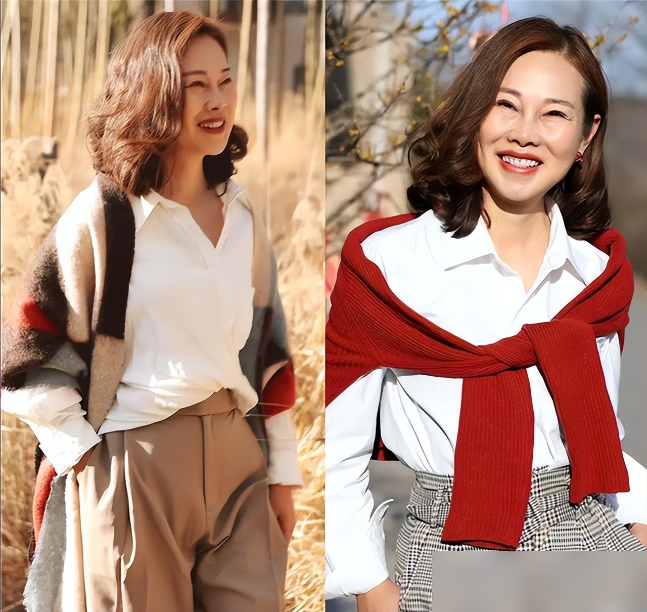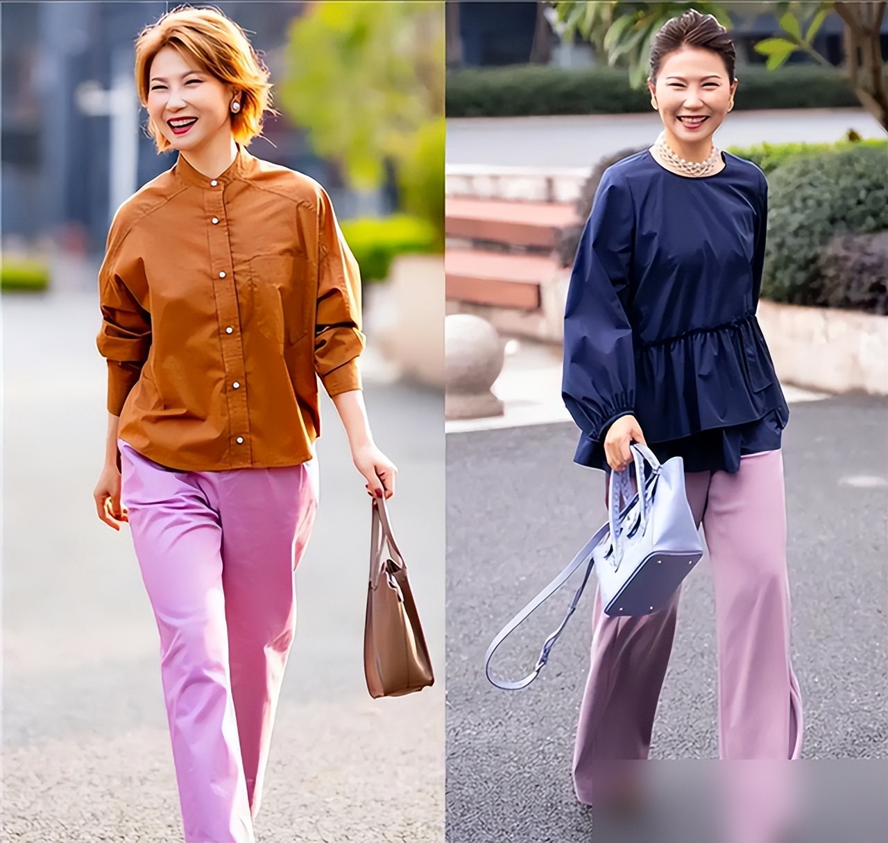 年轻姑娘靠活力撑得起这种搭配,可咱们这年纪更需要轻盈感。