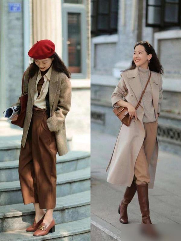 比如内搭选浅燕麦,外套用深驼色,围巾挑焦糖棕,整套不超过三个相近色,高级感就出来了。