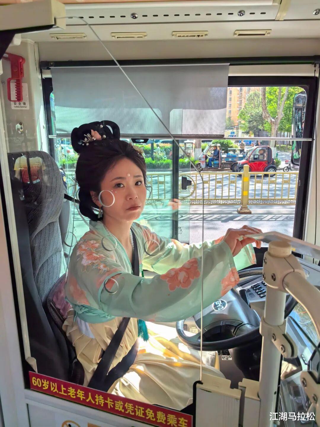 离开时的接驳车,还来了一份仪式感。前面的1号线,是个男司机,等着大家上车。我往后面去坐2号线,刚开走的那辆车,我发现是个女司机,还穿着汉服,这真是第一次遇到。下一辆我第一个上车,依然是个漂亮的汉服女司机,她停稳车,然后下去站在车门旁,招呼大家上车。开车的时候,不断提醒大家,要拐弯、到站等。
