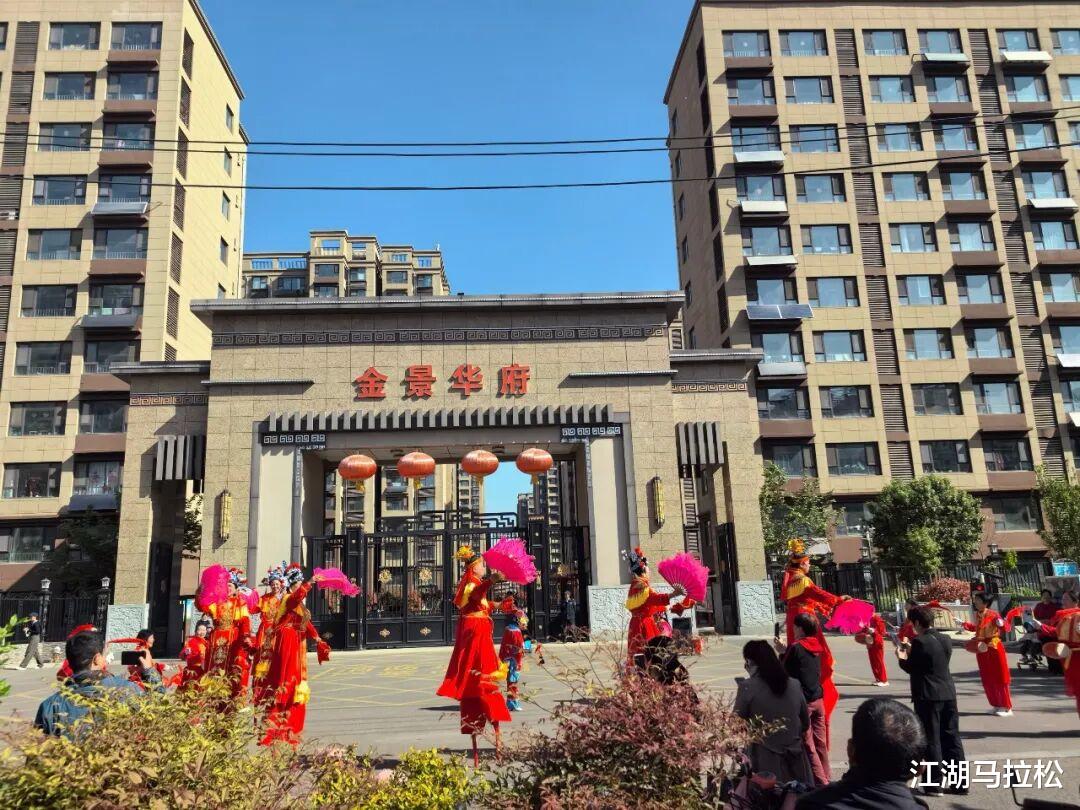 赛前了解到,整个赛道旁有62个氛围点,营造了连绵不绝的城市热情。刚起跑不久,金景华府小区门口有踩高跷表演,人流太密,不好停下来拍照。由于济马是折返赛道,我还在想,他们是大家经过后就撤呢,还是一直表演,等会跑回来还在?结果将近两个小时后回来,他们依然在表演。