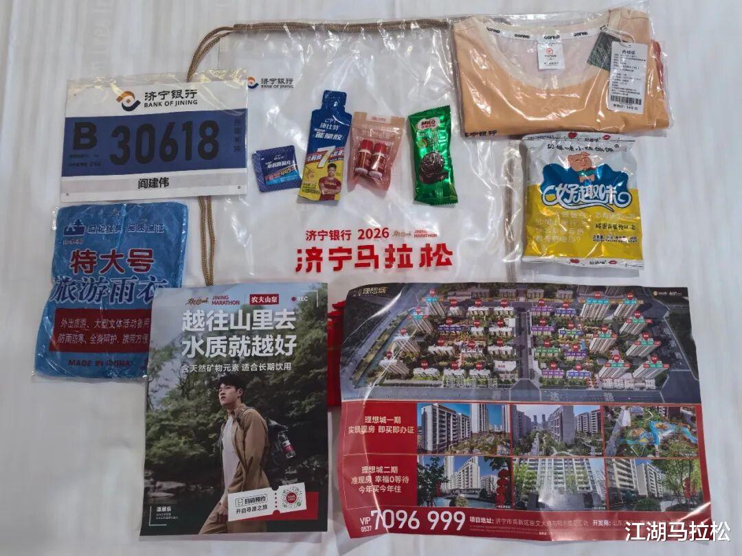 话说哪个跑者不希望参赛包里东西多点呢?马拉松如今的政策导向是参赛包简约,济马的参赛包跟之前的重马、锡马比,其实也是半斤八两。区别在于,济马只有这个,重马还有一堆赞助商发放的吃的、喝的,锡马则是有个行李箱。