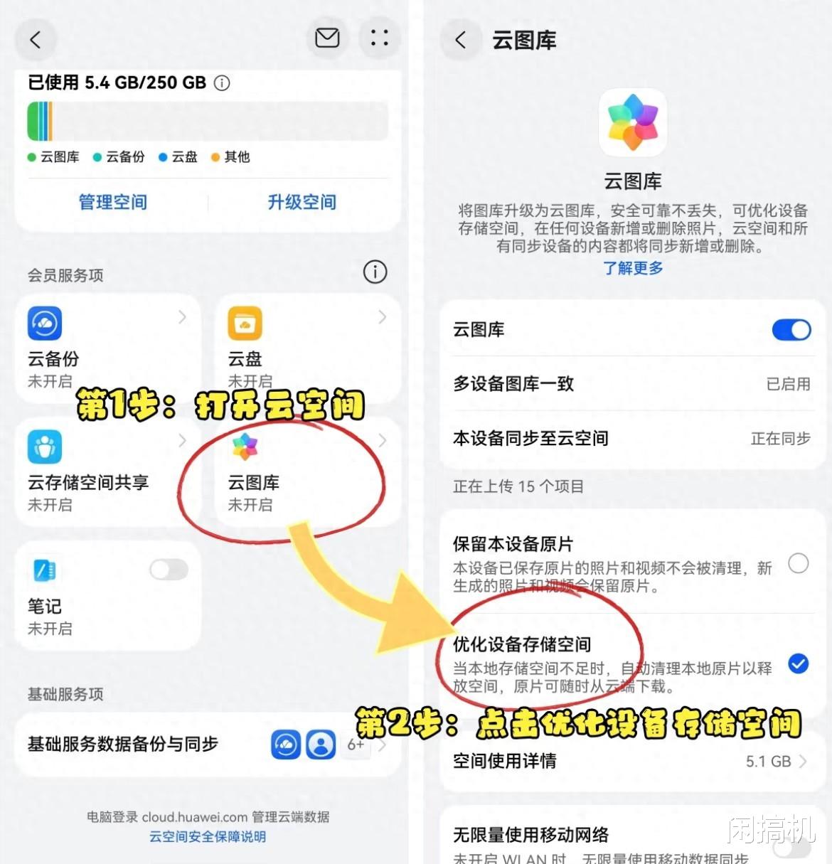 手机空间“告急”的时候,就可以打开华为云空间的云图库,选择“优化设备存储空间”,系统就会自动把设备上所有的照片视频都安全同步到云端,还会基于设备存储空间情况,自动把设备上不常用的照片、视频替换为用于预览的较小版本,想看孩子暑假旅游的照片,或自己去大理度假的照片,随时都可以从云端查看或下载原片,既实用又方便!