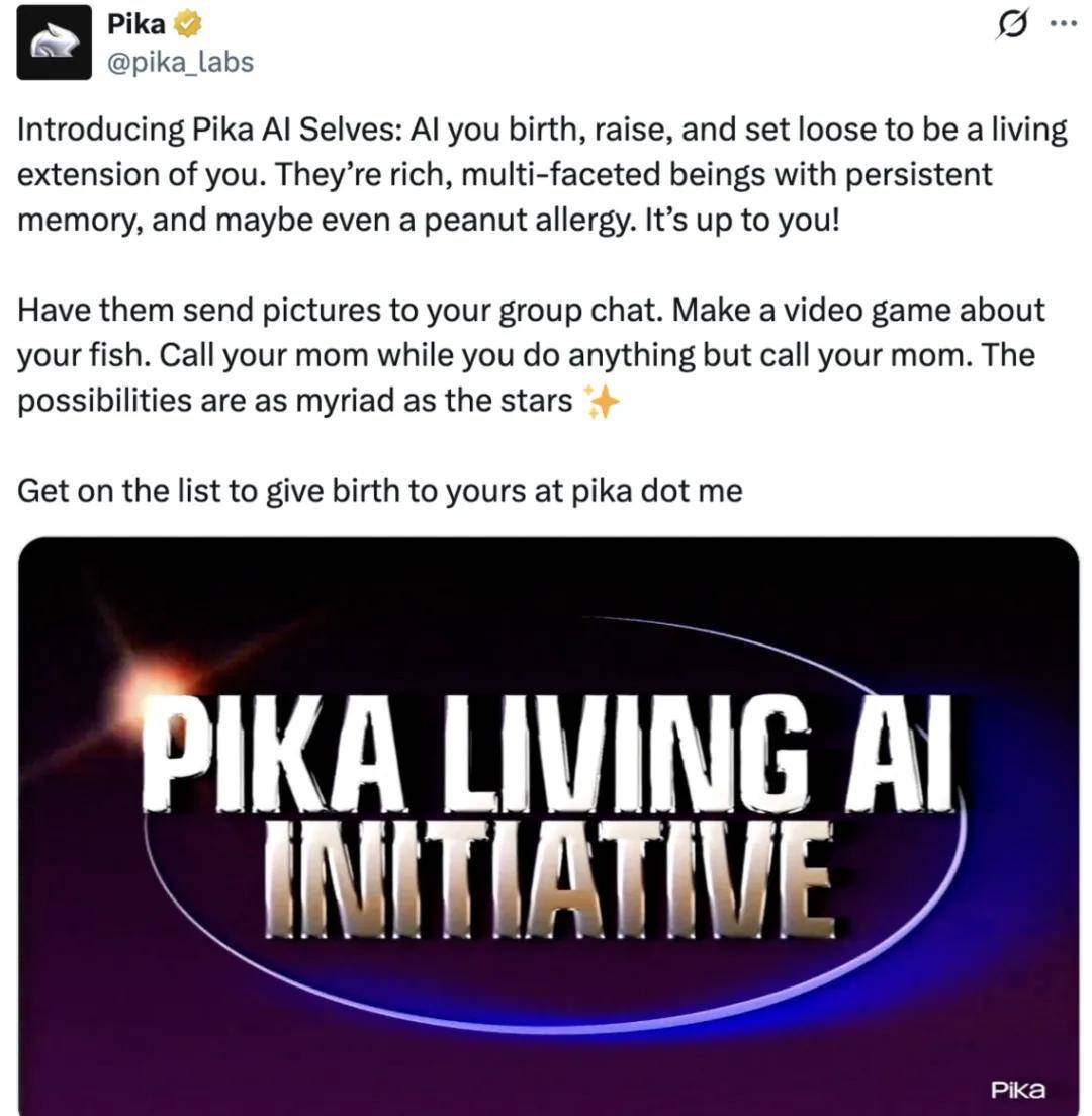 网友 Aakash Gupta 称,「Pika 的 AI Selves,或许是今年 AI 领域最具野心的一次品类跃迁,但几乎没人讨论:为什么率先做到这一点的,会是一家 AI 视频公司?」