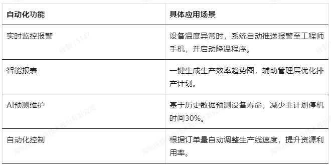 2.智能数据分析:集成大数据工具,实时生成OEE、故障率等多维报表。