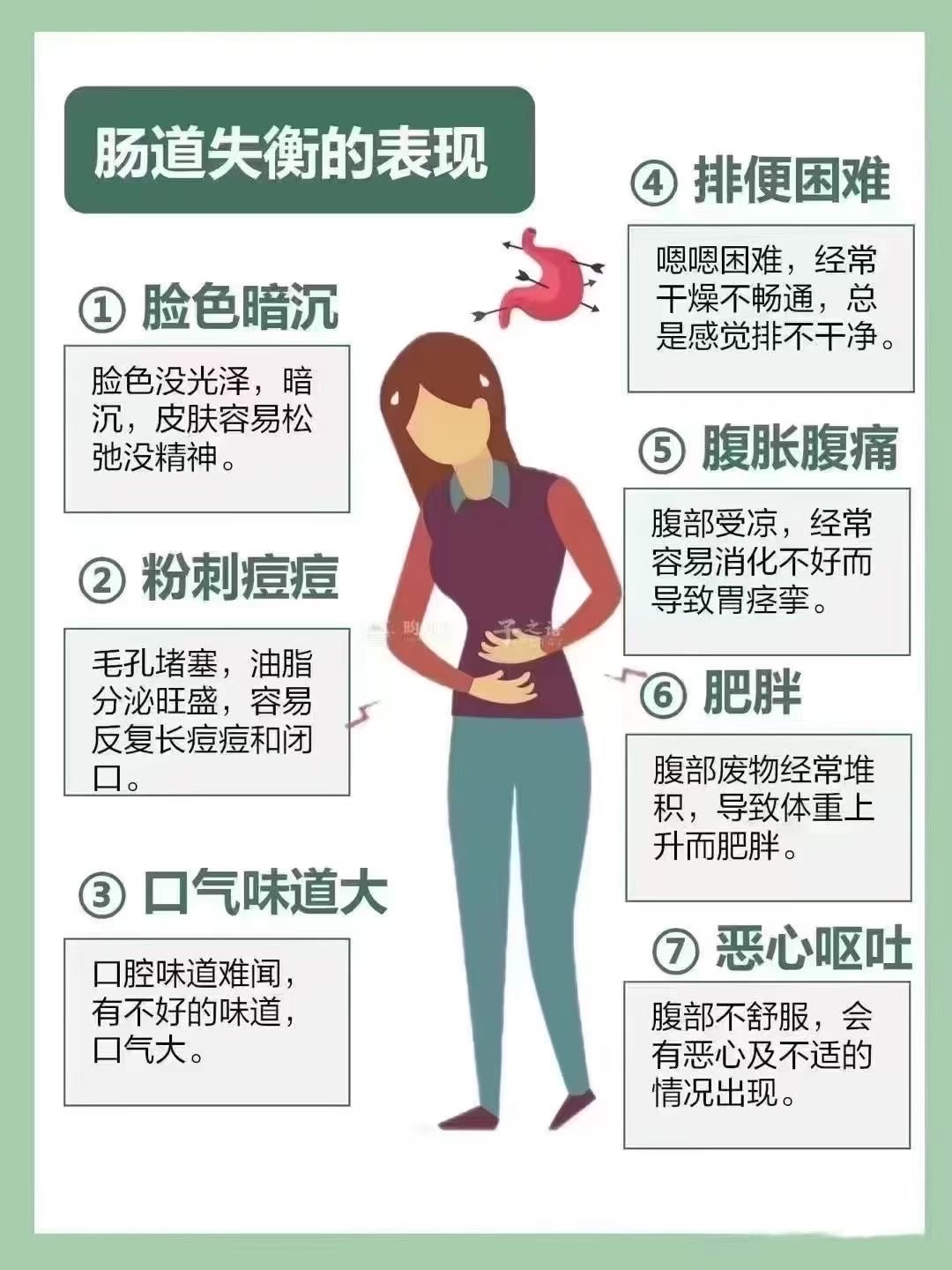 这类人群通常还会伴随一些小烦恼:口臭、肚子总胀胀的、放屁多且气味较重,大便要么黏在马桶上冲不干净,要么稀溏不成形。