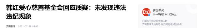 3.界面新闻2021.07.28《韩红爱心慈善基金会回应质疑:未发现违法违纪现象》
