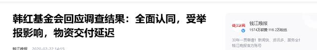 2.钱江晚报2020.02.20《韩红基金会回应调查结果:全面认同,受举报影响,物资交付延迟》