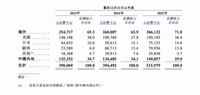招股书披露的财务数据揭示了XREAL强劲的增长动能。2025年,公司实现营业收入5.16亿元人民币。值得注意的是,其海外市场表现尤为亮眼,收入占比高达71.0%,显示出其产品在全球范围内的广泛认可度。