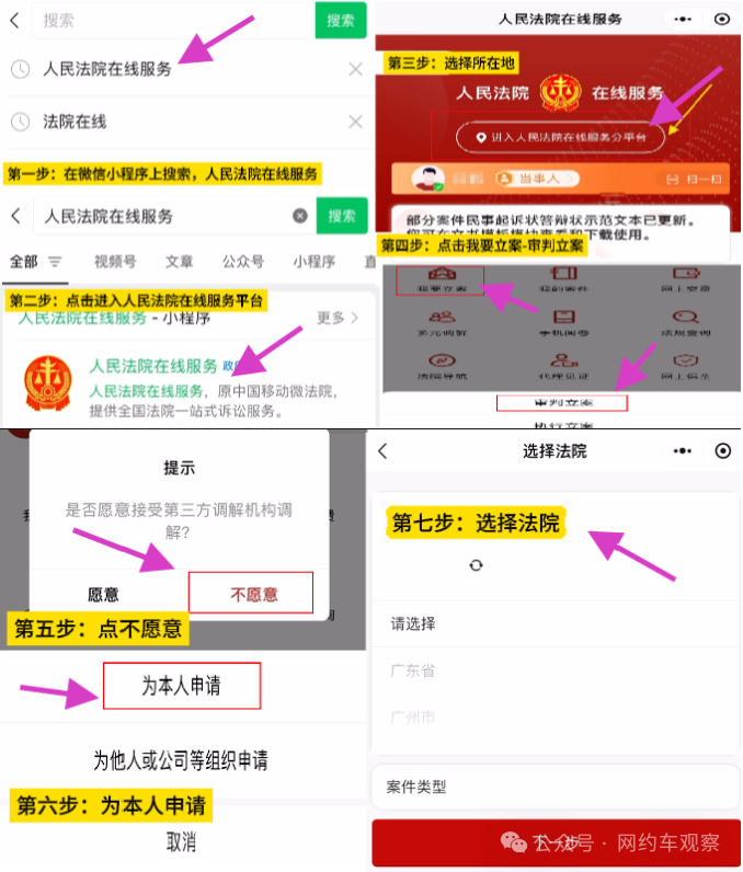 其次,带上准备好的材料前往法院诉讼。当然了,你也可以根据以下指引进行在线诉讼,上传相关截图即可提交申请。