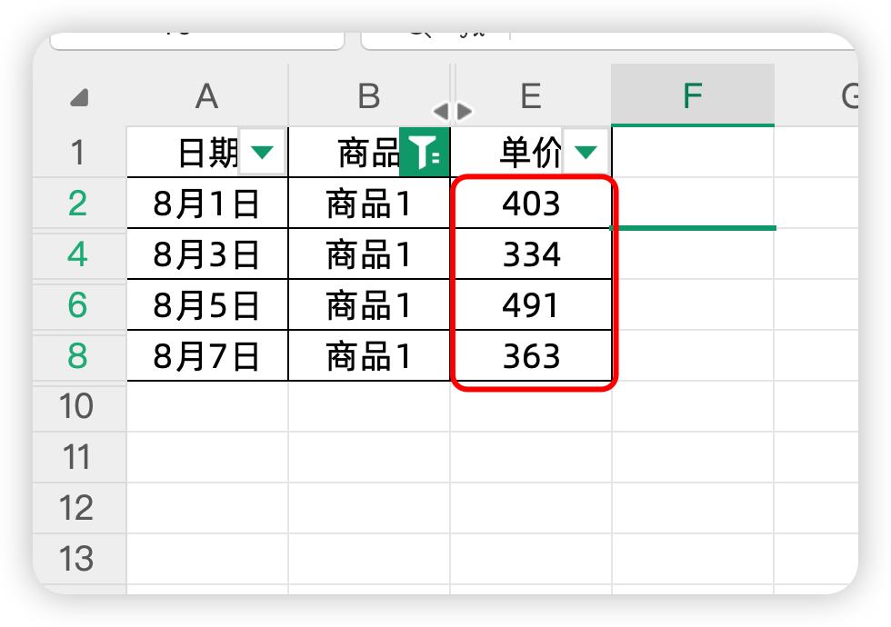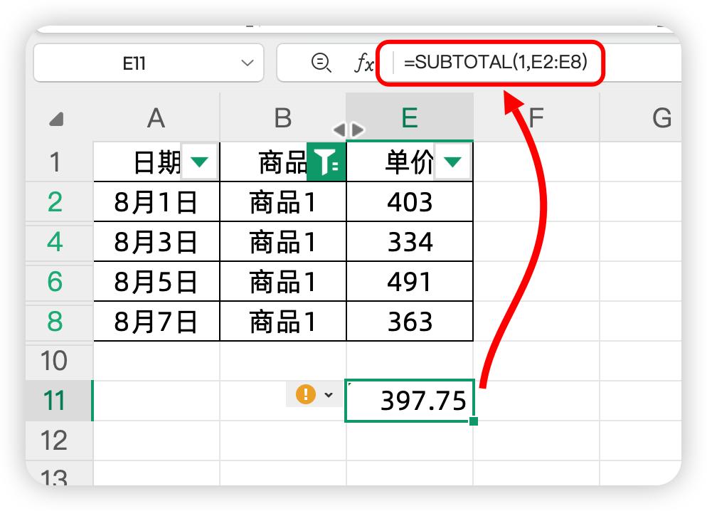 它就量把这4个值来进行平均,因为是筛选的状态下,不能直接用average