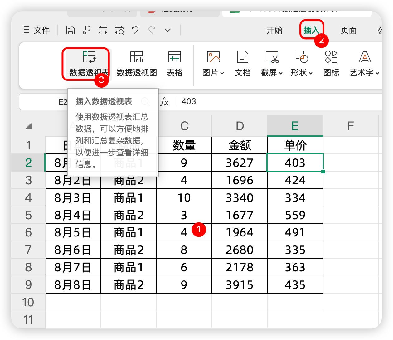 1、插入数据透视表我们通常可以使用数据透视表快速解决这类问题,选中数据,我们插入数据透视表: