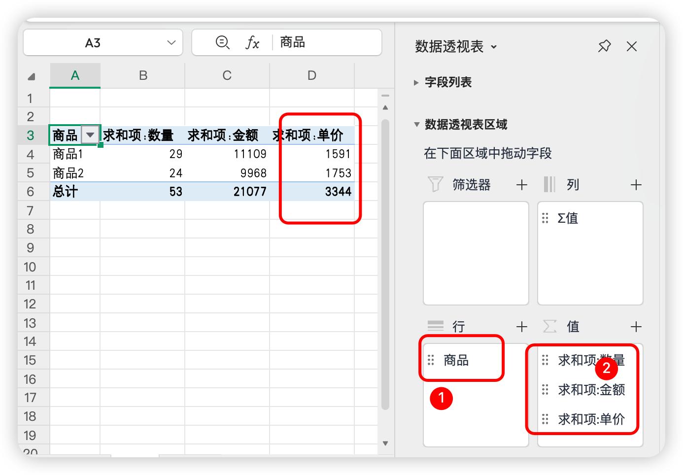 然后我们会发现,这个均价是有问题的,数据透视表默认数字是进行求和计算,所以它把所有原数据中的客单价进行了求和