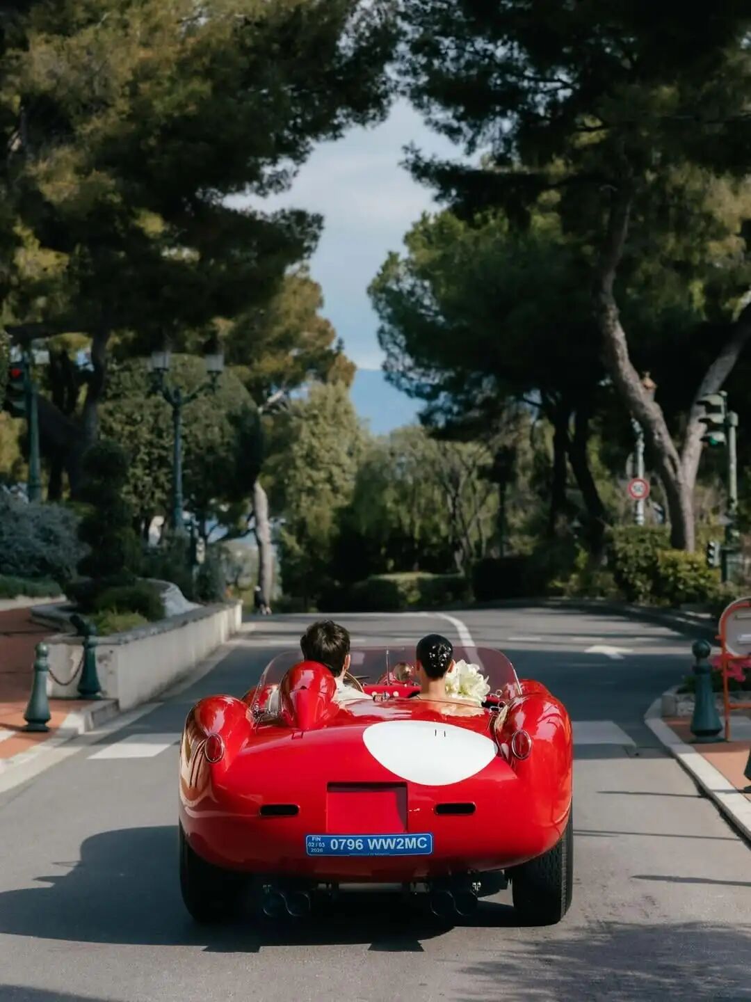 最引人注目的是他们离开的方式,足以让整个汽车界为之轰动:这对幸福的新婚夫妇驾驶着一辆有史以来最稀有、最昂贵的法拉利之一,沿着法国里维埃拉驶去。