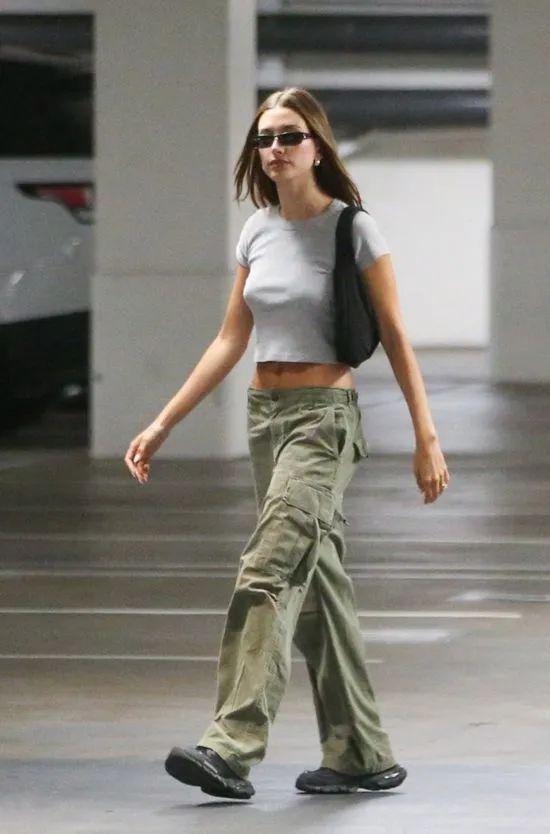 或者再潮一点,选择今年强势回潮的工装阔腿裤!