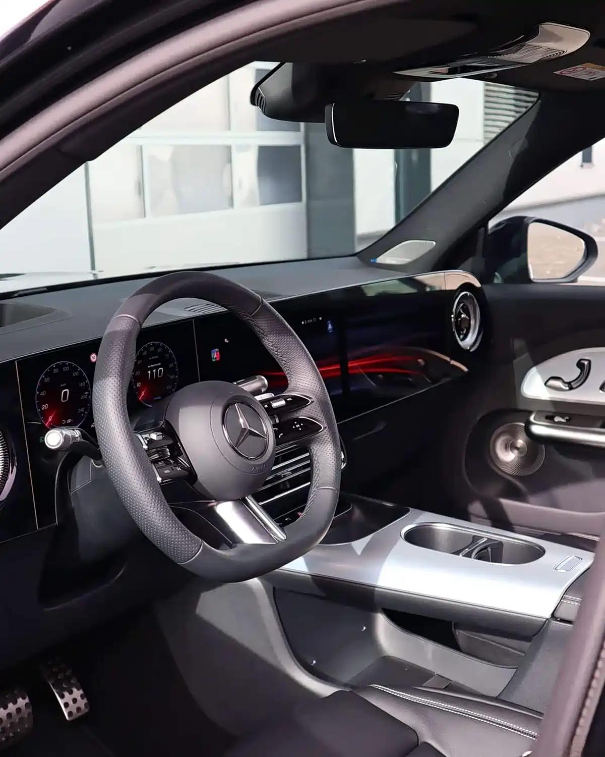 内饰和配置方面,新车延续了奔驰家族的豪华座舱设计,标志性的双联屏搭配星徽空调出风口,辅以64色氛围灯,座舱豪华质感突出。配置上,倒车影像、定速巡航、主动刹车、车道保持等安全配置,以及电动尾门、无钥匙进入、自动空调等日常高频功能均有配备,能覆盖家用出行的基础需求。