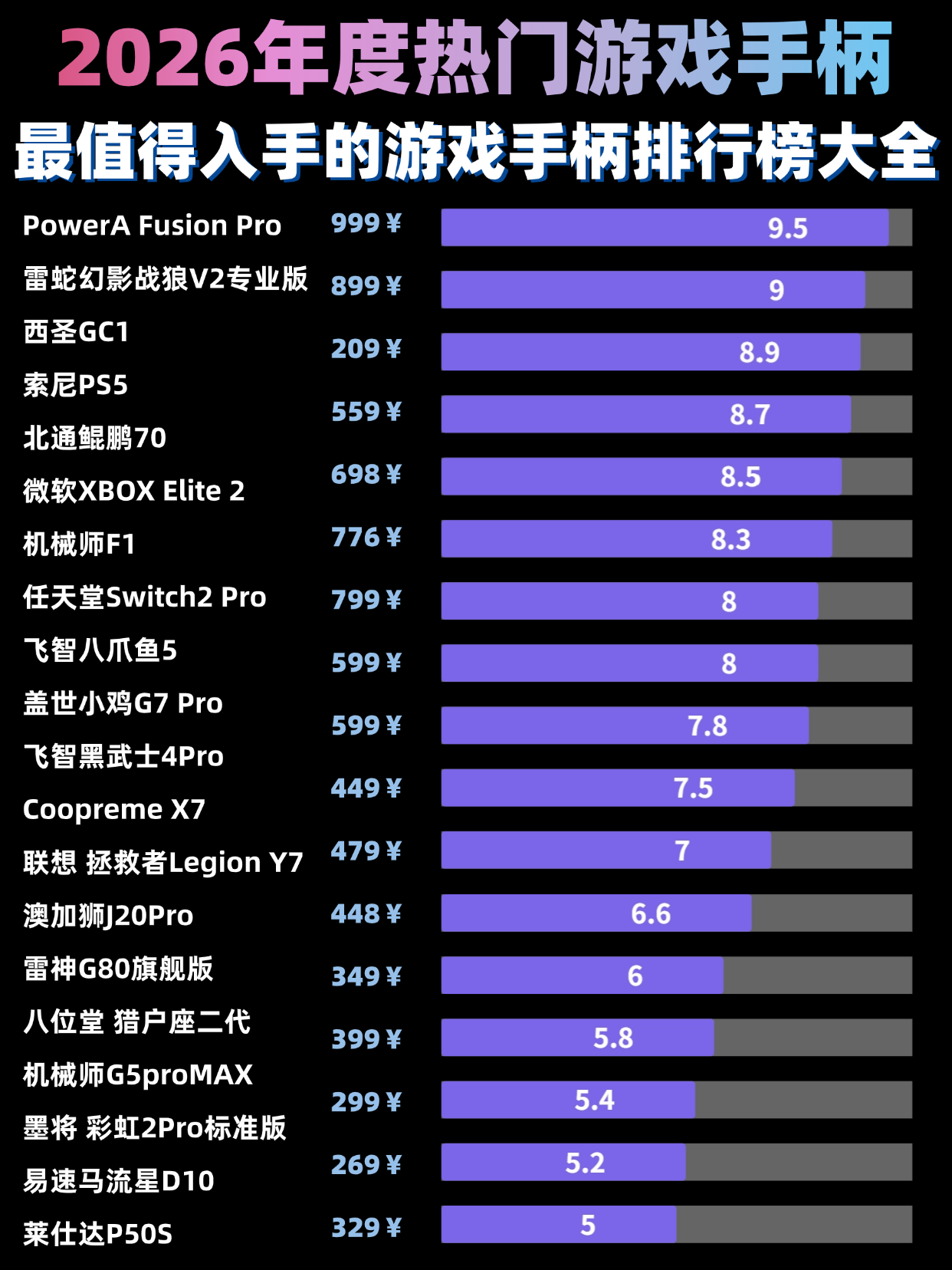 二、2026年游戏手柄哪个牌子的好?十大公认最强手柄品牌排行榜推荐