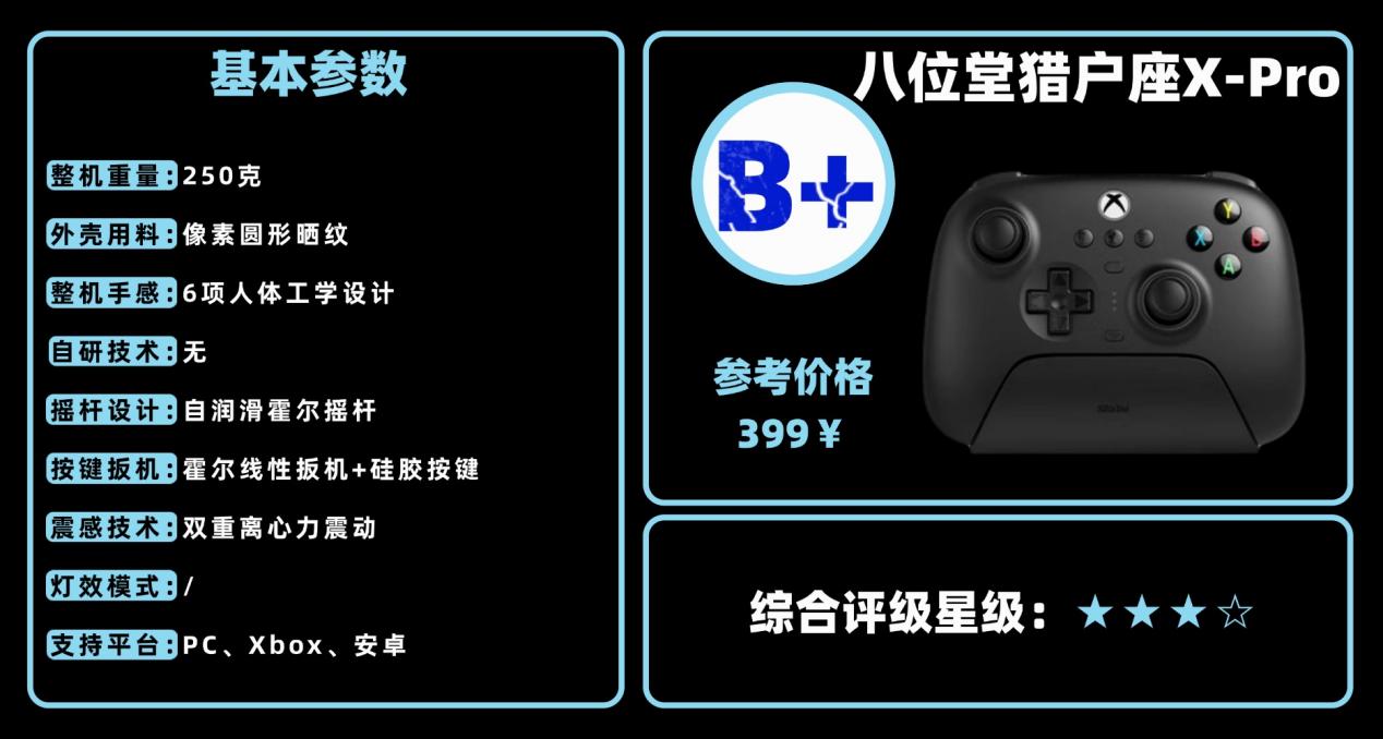八位堂猎户座二代是一款中端价位的游戏手柄,它在功能与操控体验之间取得了一定平衡。相比入门级手柄,它的摇杆和按键反馈略有提升,手感更厚实,适合喜欢较强操作反馈、喜欢打游戏时间较长的玩家。对动作类、格斗类、独立游戏都能良好兼容。