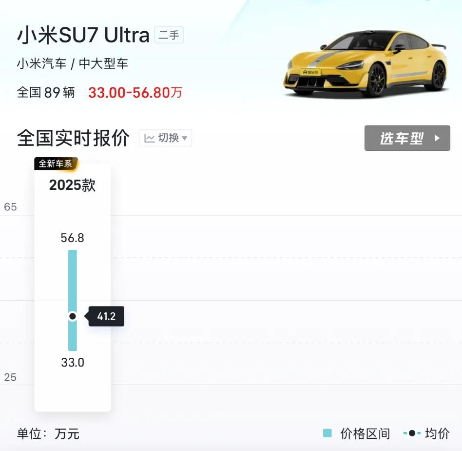 值得注意的是,据此前报道,近期小米二手车行情出现大幅下滑,三款车型中SU7价格低至15万,SU7 Ultra 跌幅最大,YU7相对跌幅较小。懂车帝数据显示,当前全国均价为41.2万元,二手准新车较原价普遍下跌超过10万元。部分1万公里左右二手车跌幅更是超过15万元。
