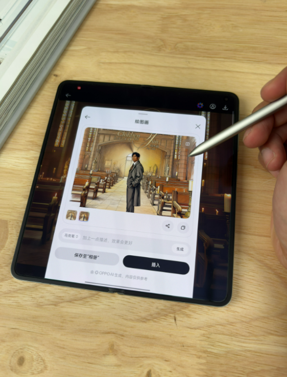 当然会画画的话(我不会)也能直接用手写笔画一版草图,后面同样圈选生成风格就行,因为折痕几乎做到看不到,所以绘画体验超棒,跟在平板上画没区别。