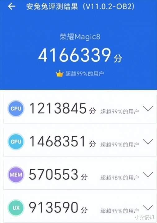荣耀Magic8 Pro配备了LPDDR5X高速内存和UFS 4.1闪存,这种组合能够提供极高的数据读写速度,大大缩短了应用的启动时间和文件的传输速度。经实测,在安兔兔跑分测试中,荣耀Magic8 Pro的综合跑分轻松突破400万分,超越了市面上绝大多数旗舰手机。这样的成绩表明荣耀Magic8 Pro在性能方面都表现相当出色,无论是运行单个大型应用还是多任务处理都能轻松应对。