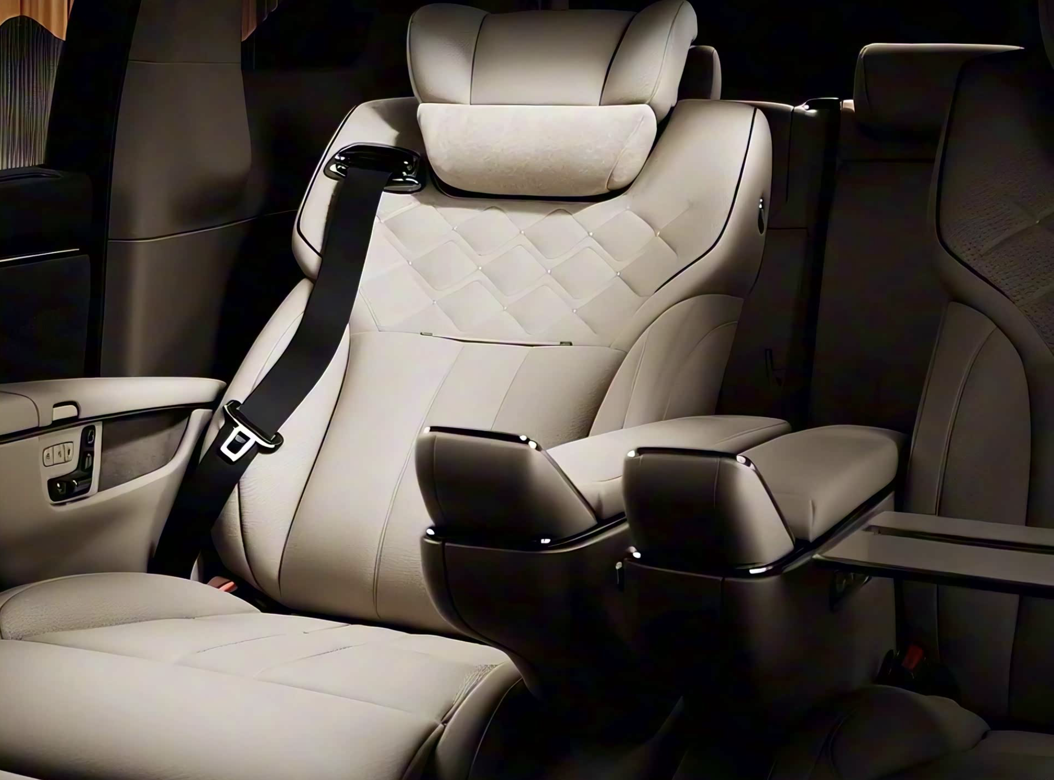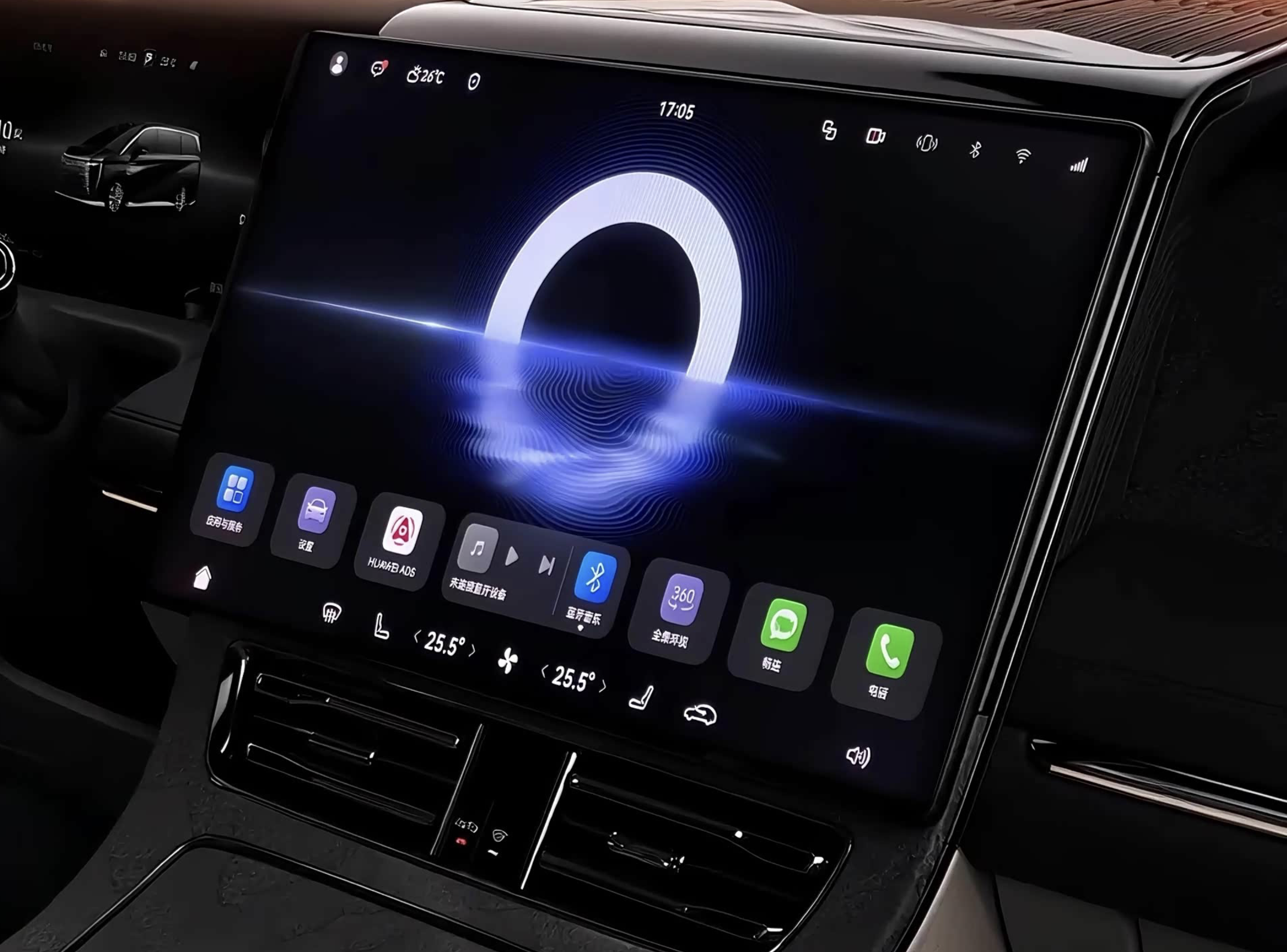 进入车内,2026款传祺向往M8采用了大面积黑色真皮材质的包裹,还配备了米白色的沙发座椅,前排配备了符合人体工学的沙发座椅,第二排配备了五星SPA双零重力座椅,第三排座椅也支持电动调节。中控台配备了12.3英寸高清液晶仪表盘、15.6英寸的悬浮式中控大屏,还配备了17.英寸的、屏幕分辨率达到3K的高清吸顶屏,双侧5英寸扶手屏、流媒体后视镜及副驾G-link平板,实现7屏互联,支持手机应用无缝流转,支持多设备互联,为二排乘客提供沉浸式娱乐体验。该车还采用了鸿蒙座舱HarmonySpace5,内置了高通骁龙8155芯片组,实现手机应用流转、连续语音交互(识别率高达99.5%)及多屏协同操作。车内还配备了四区语音交互、音乐律动氛围灯。