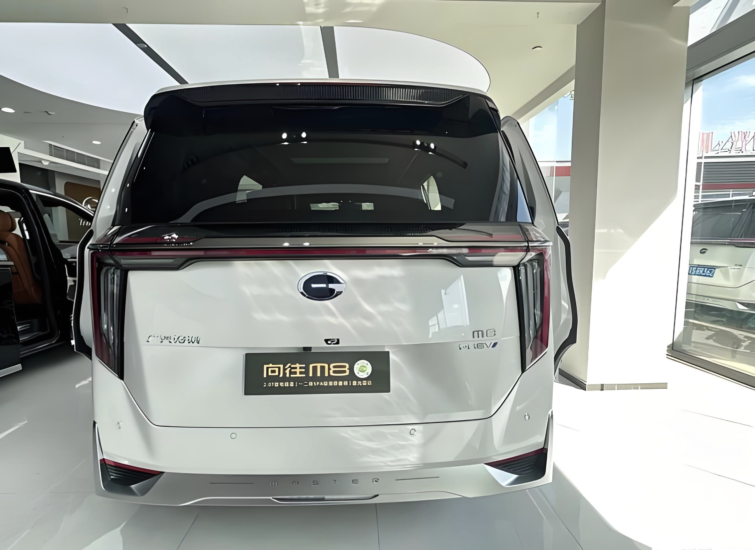 来到车身侧面,2026款传祺向往M8的车身也加入了锋利的折线,倾斜的A柱与几乎平直的车顶一气呵成,银色的饰条和黑色的中柱形成了鲜明的撞色对比;全车黑色隐私玻璃与米白色的车身涂装也同样形成了色彩对比,还带来了丰富的层次感。与大多数高端商务MPV保持一致,双侧滑门、后排隐私玻璃、电动迎宾踏板以及18英寸的密辐式轮圈,都为该车增添了不少的商务气息。该车还新增了玉满麒麟、步步生莲、福临山河和呦呦鹿鸣四种主题以及自定义迎宾灯语,以及智能迎宾投影,提升了整车的科技感。尺寸方面,全新传祺向往M8的长宽高5212*1893*1823mm,车身轴距3070mm,带来了更加出色的乘坐空间。