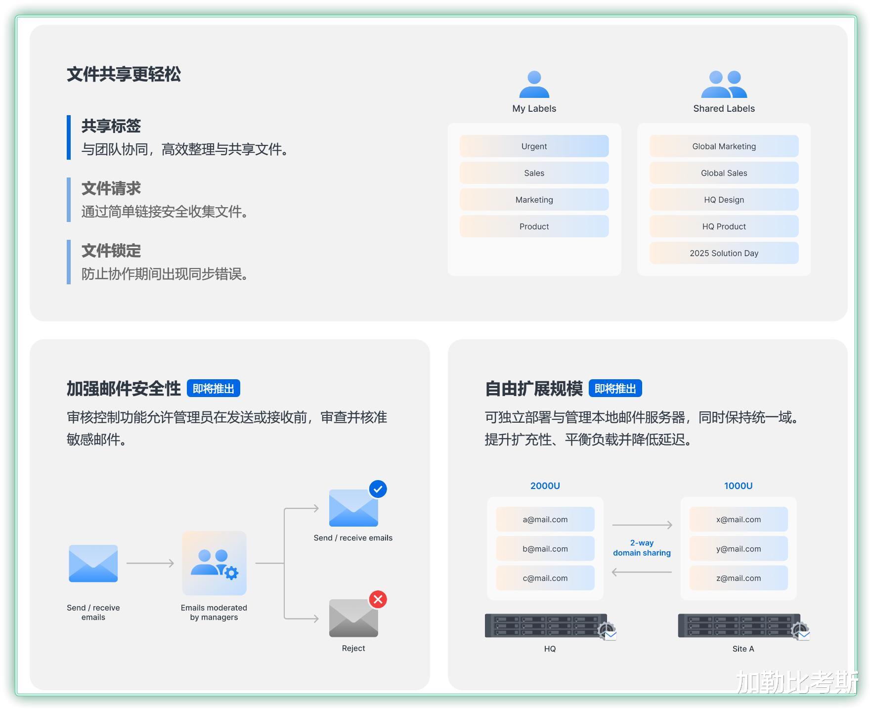 上线AI功能:群晖即将兼容 Open AI API 标准,会支持本地大模型。比如:运用 AI 直接在 Synology MailPlus 与 Office 中撰写、摘要内容,并参考相关文件,获得更精确的回复。此外,AIConsole会新增了隐私保护功能,可在本地对个人信息进行脱敏处理。未来还计划兼容OpenAI标准API,这意味着你可以在完全掌控数据隐私安全的前提下,在自己的NAS上部署和运行各类AI服务,打造“全本地AI使用环境”。