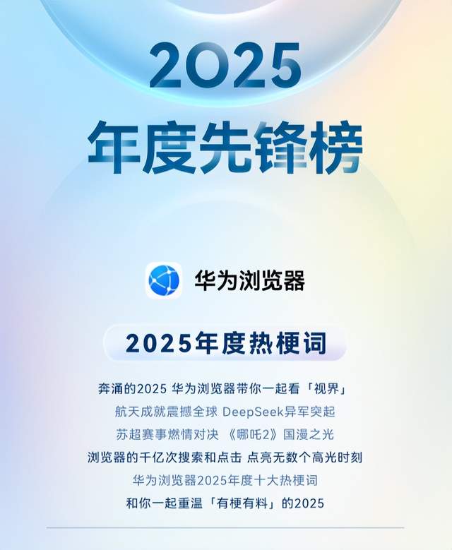 时间过得太快,转眼2025年就要翻篇了。今天拿着刚换的华为Mate 80摸鱼时,无意间点开了华为浏览器推送的“2025年度先锋榜”,本来只是想随便扫一眼,结果直接被那一串年度热梗硬控住了。