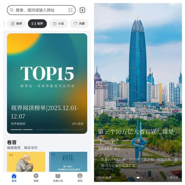 特别是首页的“视界”频道,我真的按头安利给每一个有“资讯洁癖”的人。它完全摒弃了那种杂乱无秩序的资讯推流,而是经由编辑团队严选高品质内容资讯,每一篇资讯还贴心搭配了4:5大图设计,就像在手机里装了好多本随时更新的精品杂志。