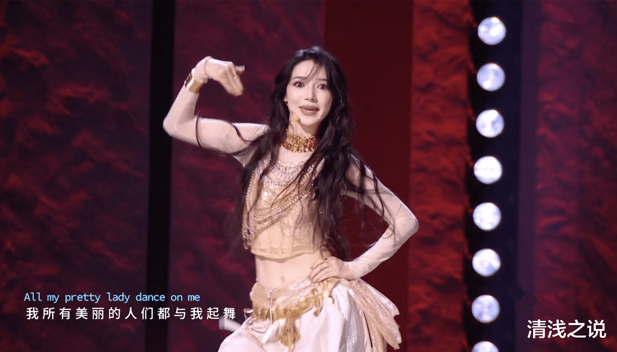 之后出场的阚清子跟前面的温峥嵘一样出现了演唱事故,温峥嵘是二重唱,阚清子是一度没声音。原因是她唱《爱的代价》时感触太深,有点哽咽了,但也正是因为她哽咽,大家又知道她的经历是比较曲折,都被她感动了。阚清子是从事业到情感上都曲折,事业上一直在演配角,还是演那类令人心塞的配角,情感上跟纪凌尘谈了三年分手了,后来结婚生子,又一度被人传出孩子怎么样。
