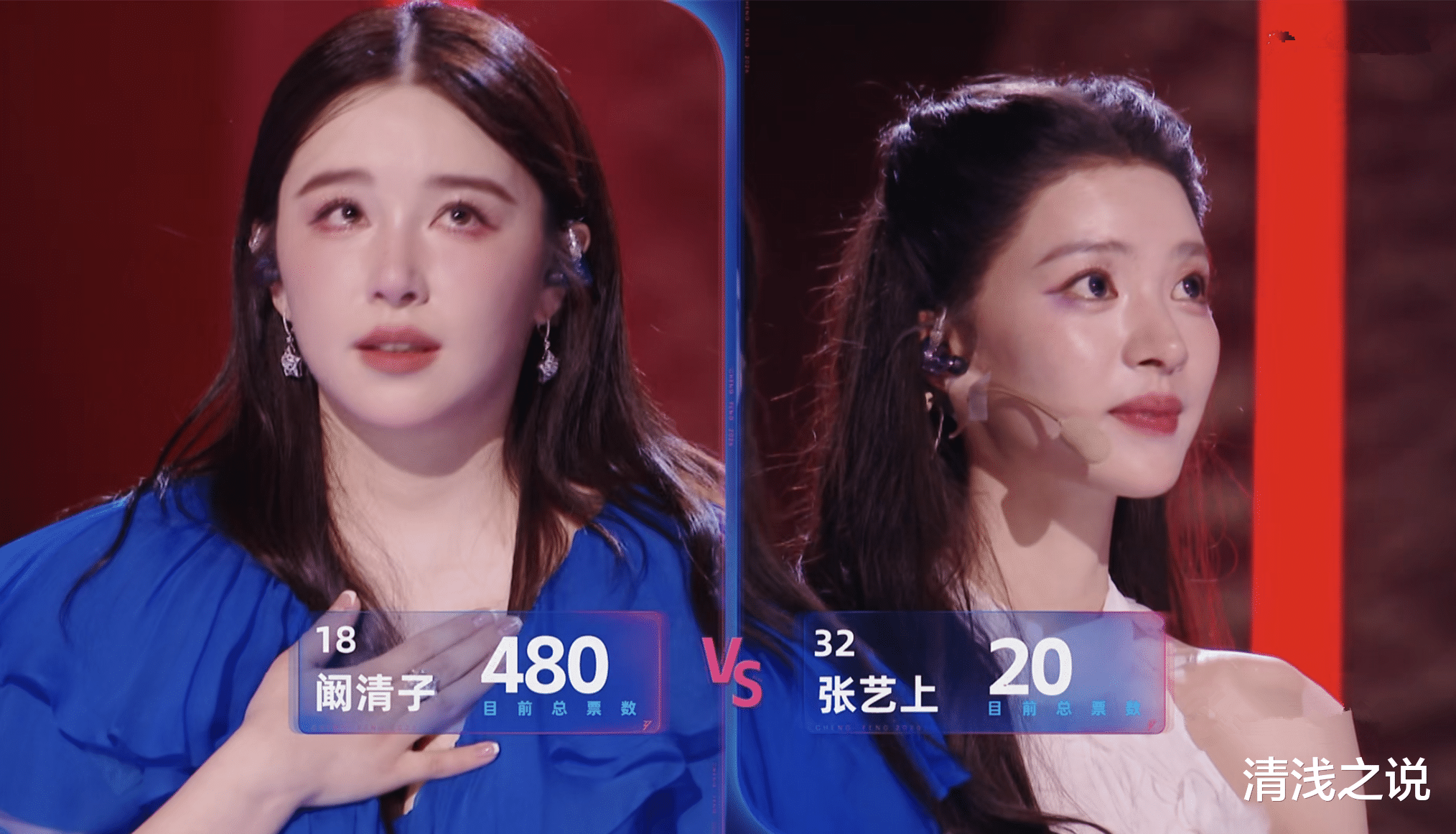 当然,更令人动容的是倪萍出于心疼阚清子,向节目组提议让阚清子再唱一次,她相信闻清子不是那样的水平,节目组也同意了。但阚清子拒绝了,说要尊重比赛规则,不然对其他姐姐不公平。这份对规则的尊重让阚清子也赢得了观众的尊重。多重因素叠加下,阚清子拿到了480票,这是4月3日初舞台上半场第二高的票数。和阚清子PK的张艺上也是演员,虽搞了唱跳,但气息不太稳,加上没有太多精神内核或故事感支撑着她,最终只拿了348票。
